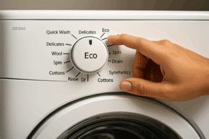 Les programmes économiques des lave-linge et lave-vaisselle réduisent la consommation d’eau jusqu’à 30 % par rapport à un cycle classique, en échange d’un temps de lavage un peu plus long.