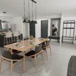 Cette maison moderne propose une surface habitable de 128 m², parfaitement optimisée pour le confort et la convivialité. L’espace de vie principal, comprenant un séjour lumineux de 47 m² et une cuisine ouverte de 10 m², constitue un lieu central, idéal pour recevoir et partager des moments en famille. Les larges baies vitrées offrent une abondante lumière naturelle et permettent une belle continuité entre l’intérieur et l’extérieur.
